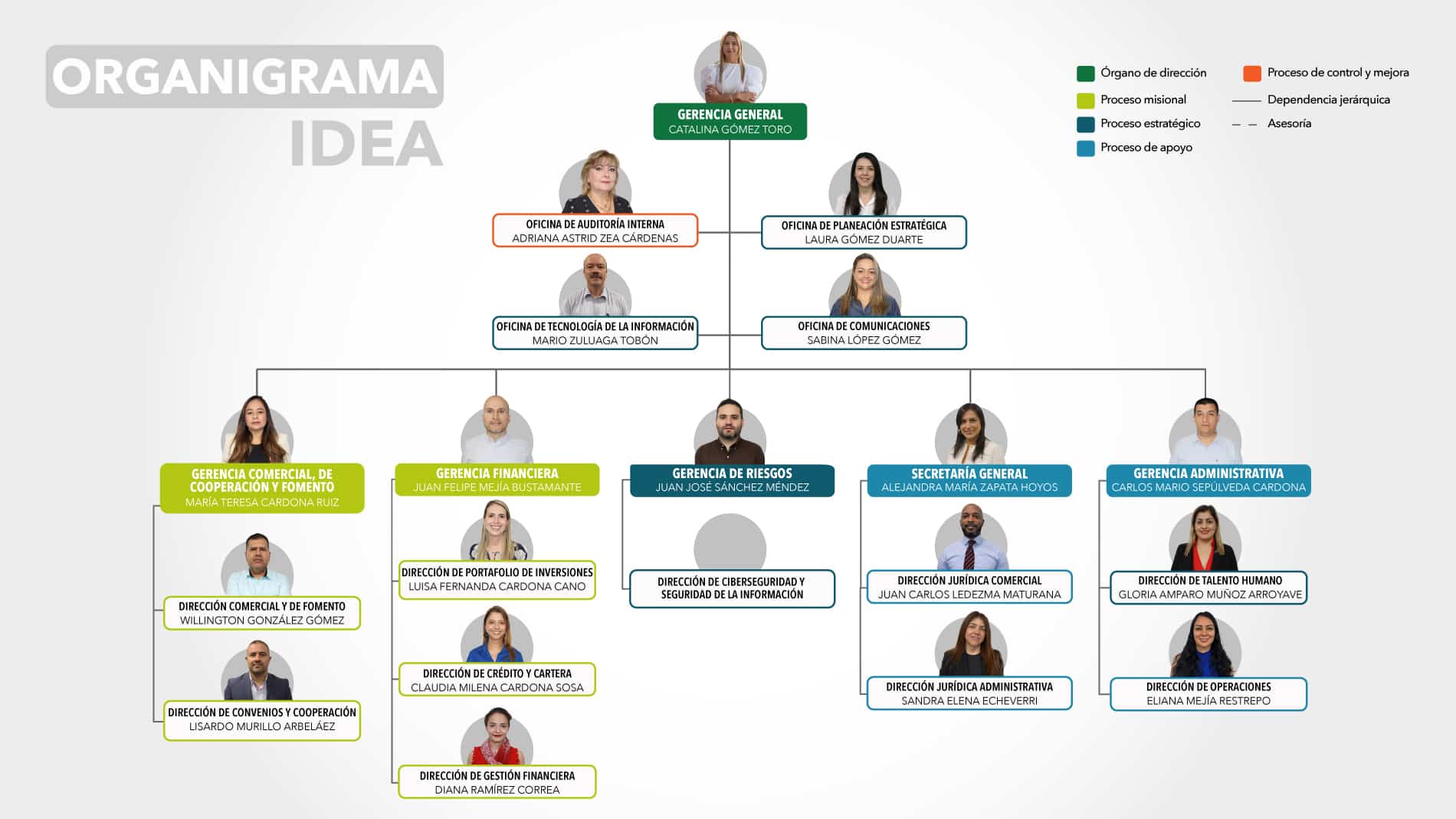 | 01 | Colocaciones y Asesoría | Financiar los proyectos de inversión adelantados por los Clientes del IDEA y atender sus necesidades de liquidez temporal bajo parámetros de eficacia, eficiencia y responsabilidad social; así mismo, capacitar y asesorar a los Clientes Públicos en temas que contribuyan al mejoramiento de su gestión institucional. | V09 | 25-09-2023 |
